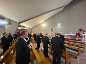 A manhã desta quarta-feira, dia 21, começou com a Santa Missa para episcopado das sub-regiões Aparecida, São Paulo e Sorocaba no Hotel onde estão hospedados em Roma para a Visita Ad Limina Apostolorum. Como sucessores dos apóstolos e presididos pelo Bispo Diocesano de Mogi das Cruzes e presidente do Regional, Dom Pedro Luiz Stringhini, os bispos celebraram a memória litúrgica de São Mateus, apóstolo e evangelista.