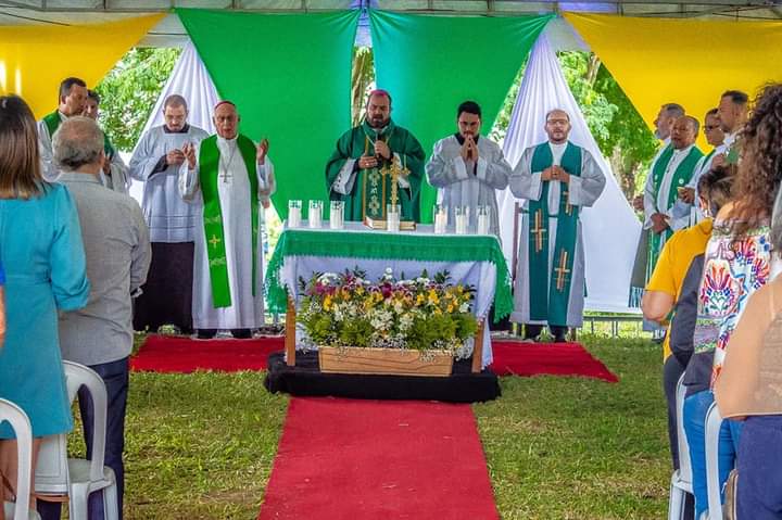 Foi em clima de festa e de gratidão a Deus, que Dom Arnaldo Carvalheiro Neto, Bispo Diocesano, presidiu a missa campal, concelebrada pelo Bispo emérito, Dom Vicente Costa, presbíteros da família da Esperança e da Diocese.