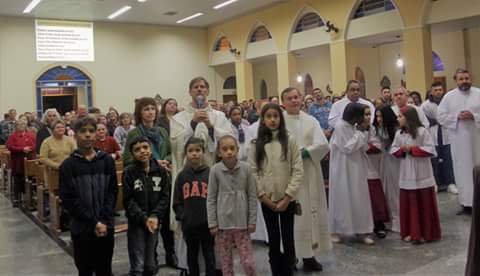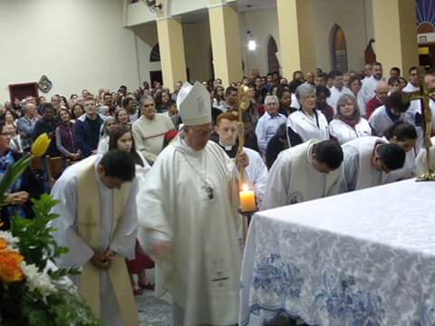 A missa solene foi presidida pelo Bispo Diocesano, Dom Vicente Costa, e concelebrada pelo pároco, padre Lúcio Carlos Savietto e pelos padres Sílvio Andrei Rodrigues, da Paróquia Nossa Senhora do Monte Serrat, de Salto; e Juverci Pontes Siqueira, da Paróquia São Sebastião, de Cajamar.