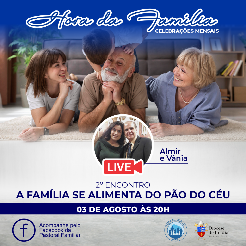 Acompanhe a live com o casal Almir e Vania, nesta terça-feira (03), às 20h, direto das redes sociais da da Pastoral Familiar e da Diocese de Jundiaí.