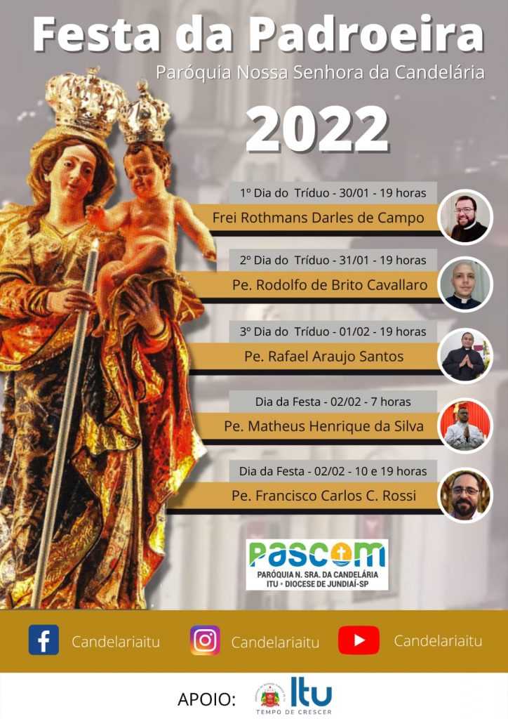 No dia da Padroeira, celebrada em 2 de fevereiro, o Padre Matheus da Silva celebra a Santa Missa às 7h. Às 10h haverá Missa Solene com Bênção das Velas, celebrada pelo Pároco, Padre Francisco Carlos Caseiro Rossi. O presbítero também celebrará a missa festiva das 19h, que será seguida de uma procissão pelas ruas do centro da cidade.