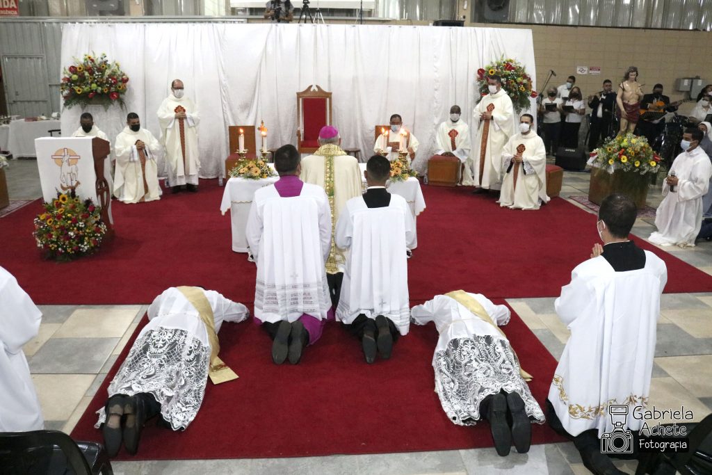 O Bispo lembrou a cada um que ao responderem “sim” a esse chamado devem “despojar-se, reconhecer suas fraquezas e revestir-se da misericórdia de Deus, sendo humildes para Deus e para o povo”. E por fim, Dom Vicente, como Pai e Pastor, falou da grandeza do amor de Deus, incentivando-os a confiar: “Não tenhais medo, confiem n´Aquele que os chamou”.