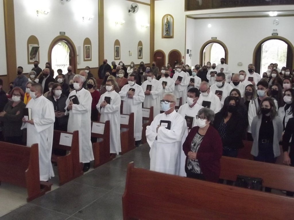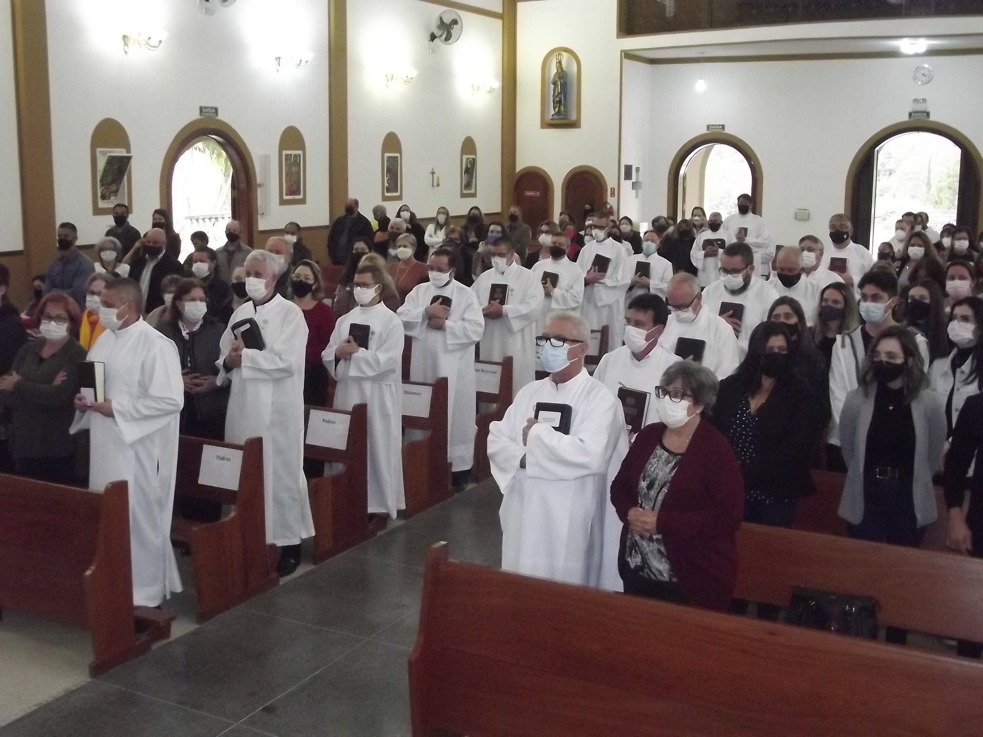 Dom Vicente Costa, Bispo Diocesano, presidiu Celebração Eucarística de Instituição do Ministério do Leitorado de um grupo de 23 futuros Diáconos, alunos da Escola Diaconal Santo Estêvão. Os candidatos são das cidades de Jundiaí.