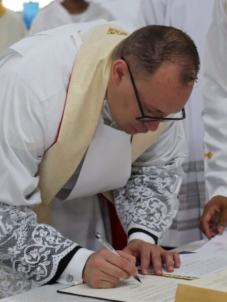 Com simplicidade e firmeza, ele assumiu diante do Bispo e dos fiéis o compromisso de servir com amor, dedicação e fidelidade à Igreja, sendo sinal da presença de Cristo Bom Pastor entre nós.