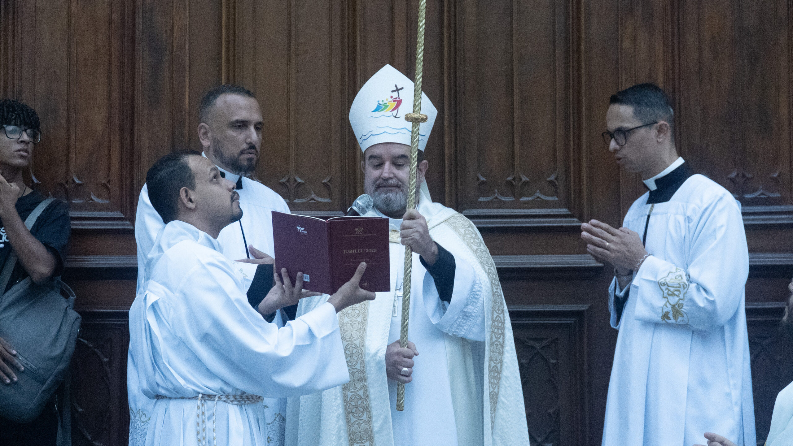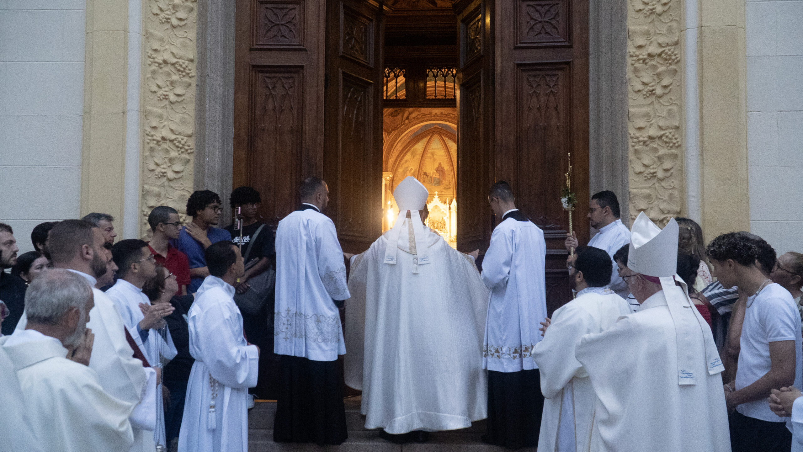 Na porta do templo foi realizada a saudação à cruz e a entrada solene de todo o povo na Igreja-Mãe da Diocese, onde aconteceu o rito da aspersão, recordando o Batismo, porta de entrada na vida de fé.