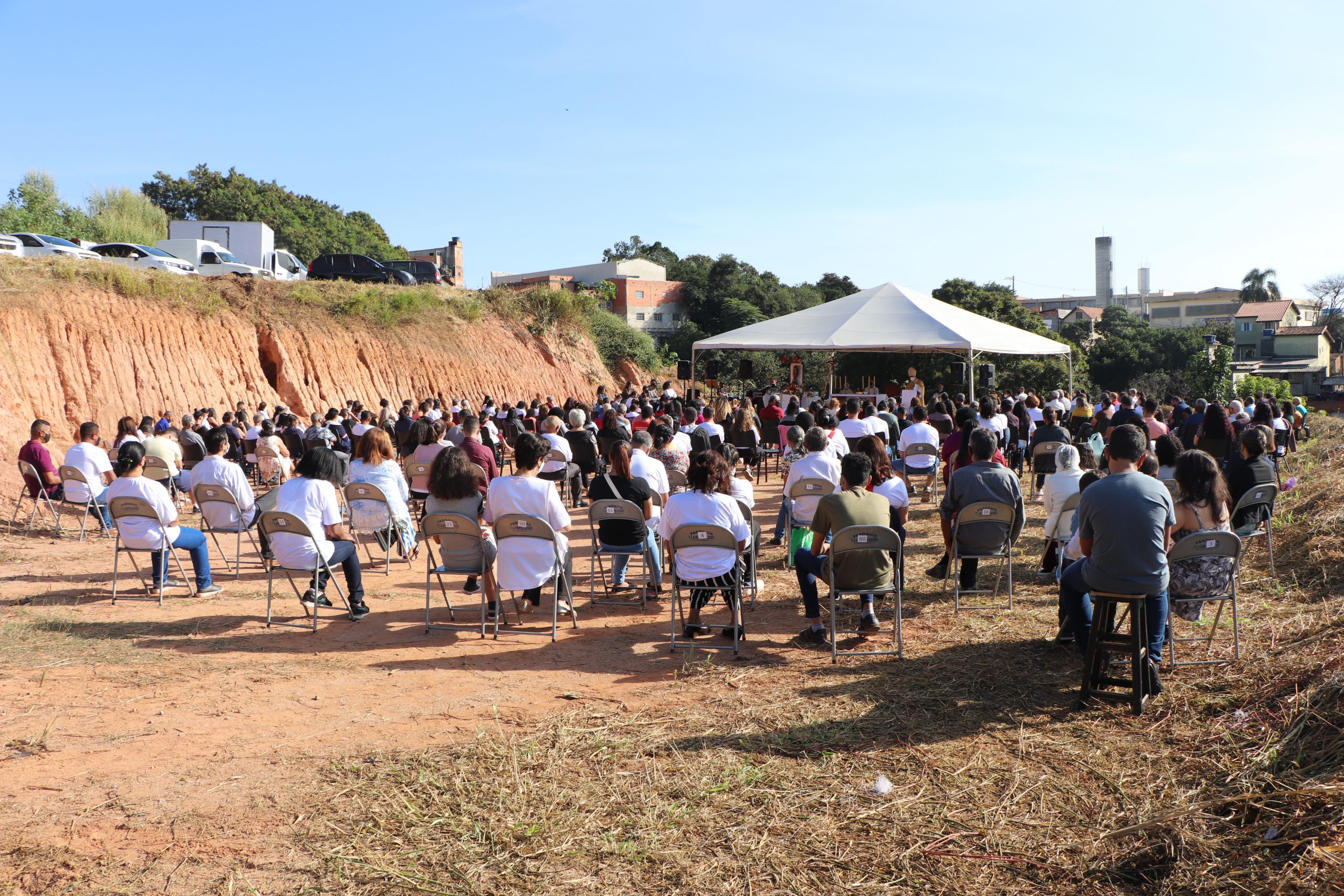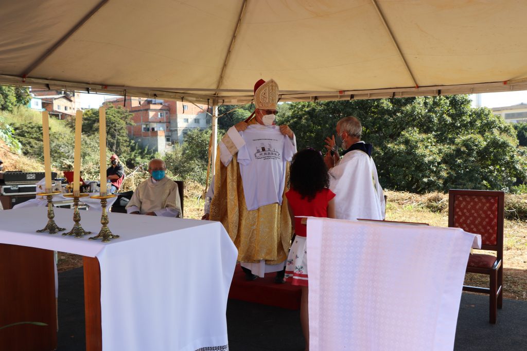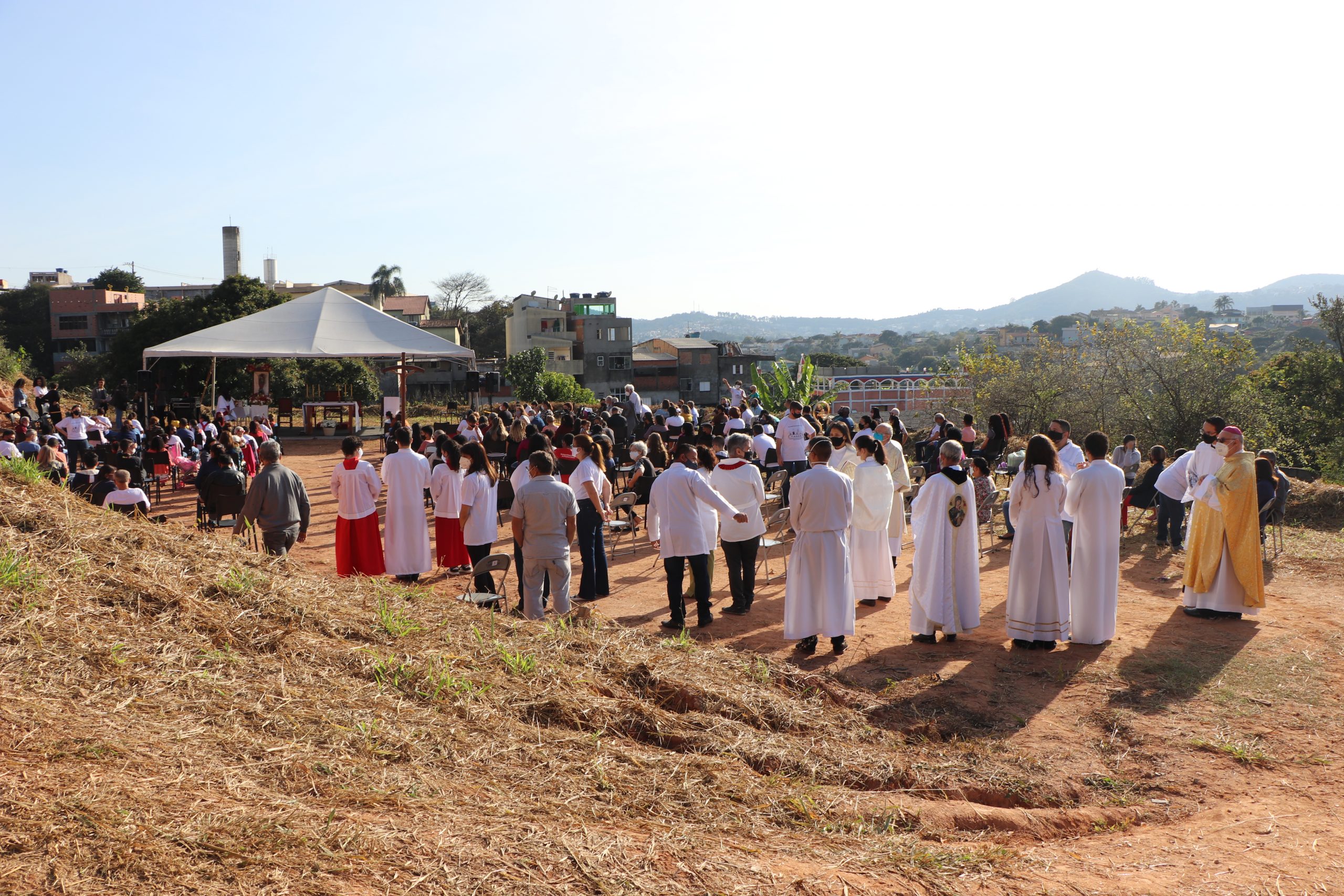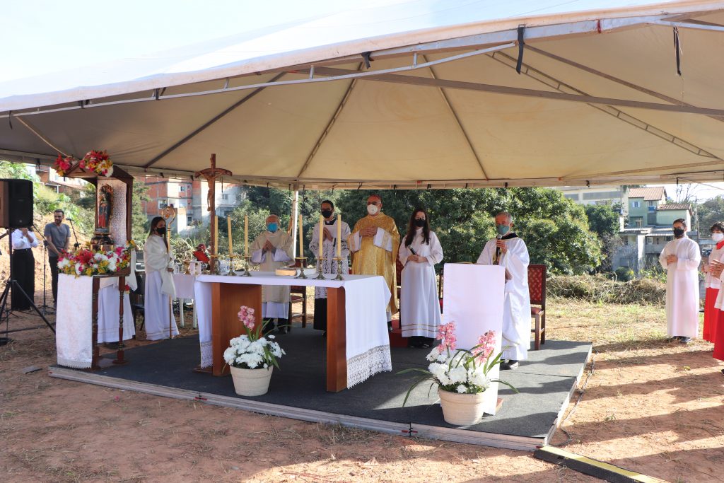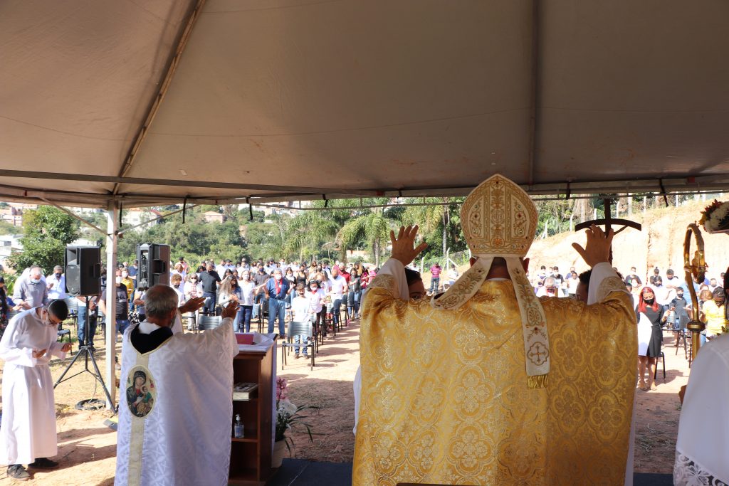 A celebração, que foi presidida pelo Bispo Diocesano, Dom Vicente Costa, aconteceu em um terreno, onde futuramente será construída a nova Igreja matriz.