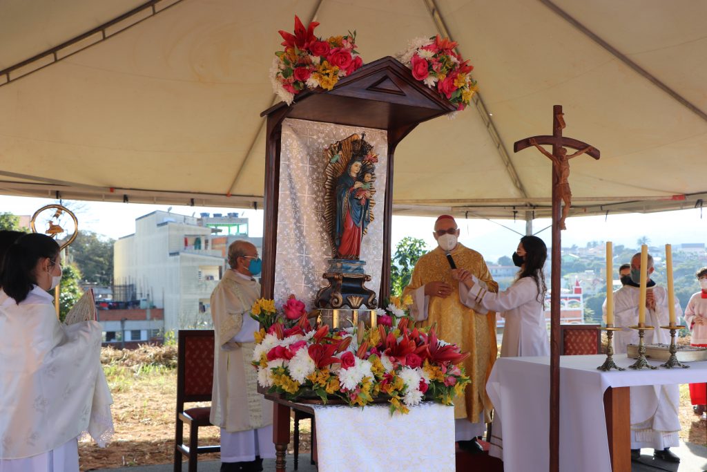 Certos de que o novo templo é uma promessa de Deus e na esperança pelo início das obras, a comunidade rezou a oração da padroeira e entoou seu hino de louvor,