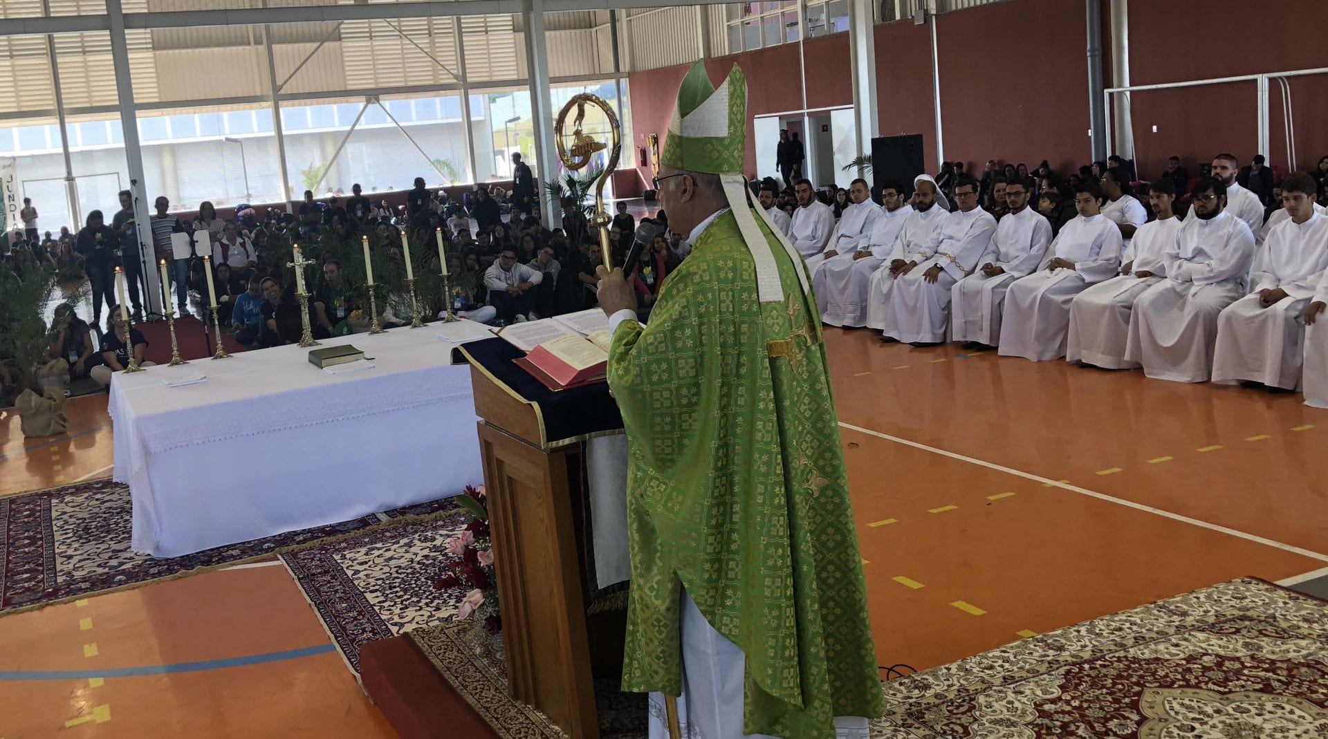 Além dos jovens e das famílias acolhedoras, os seminaristas, religiosos e religiosas e os padres Ton (assessor diocesano do Setor Juventude), Joaquim Gonçalves Cruz (reitor do seminário Propedeutico), Alberto Simionato (reitor do seminário filosófico) e Márcio Felipe de Souza Alves (reitor do Santuário Diocesano Nossa Senhora Aparecida), participaram da Eucaristia.