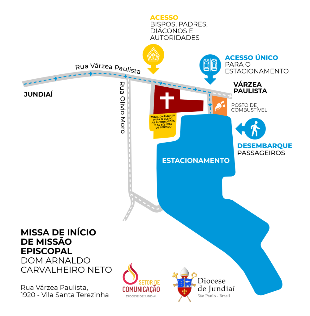 Seguem as orientações para o acesso ao Centro de Evangelização Arca da Aliança “Mãe da Divina Providência”, em Várzea Paulista, no dia 13 de agosto, para a missa de início de missão episcopal de Dom Arnaldo Carvalheiro Neto.