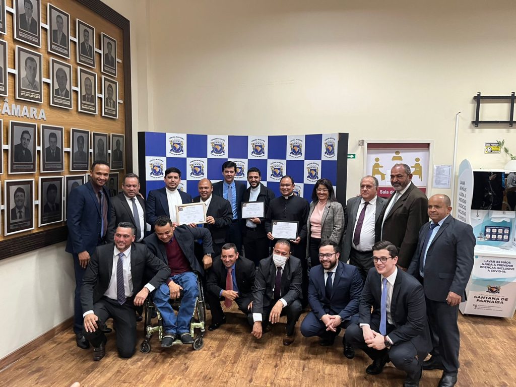 A homenagem, que foi concedida pelos vereadores  Hugo Silva e Gino Mariano e assinada pelos demais vereadores presentes à sessão, aconteceu durante a 23ª Sessão Ordinária, no auditório Antônio Branco da Câmara Municipal de Santana de Parnaíba