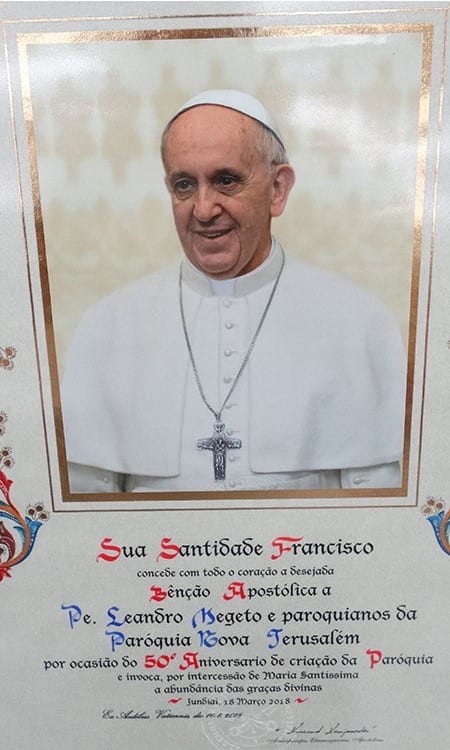 Ao final da celebração, o presidente da Câmara Municipal da Cidade, como autoridade civil, prestou uma homenagem à paróquia. O Padre Leandro manifestou sua alegria em participar desse momento tão especial e apresentou ao povo a bênção Apostólica do Papa Francisco dada à Nova Jerusalém por ocasião do Jubileu.