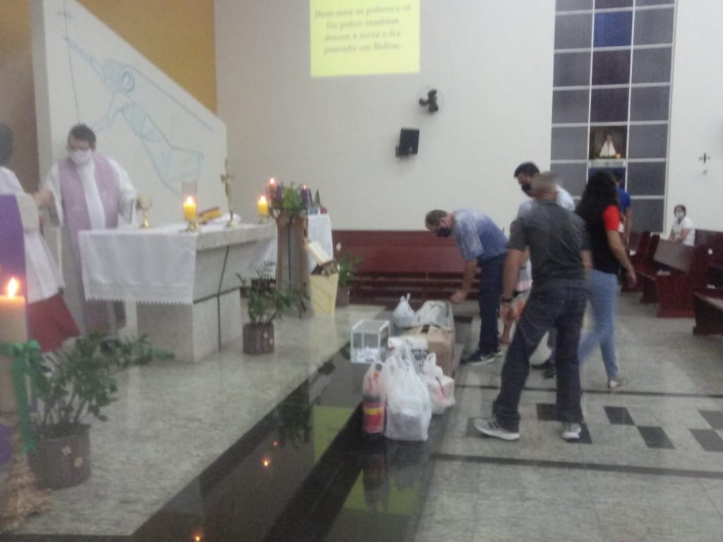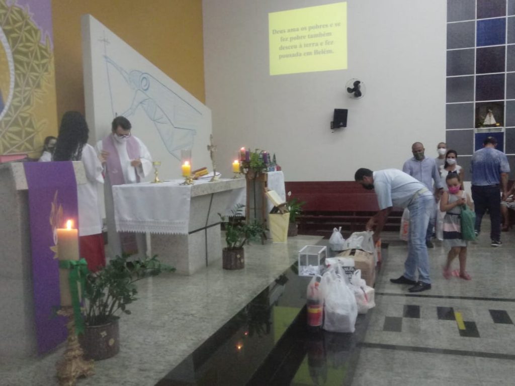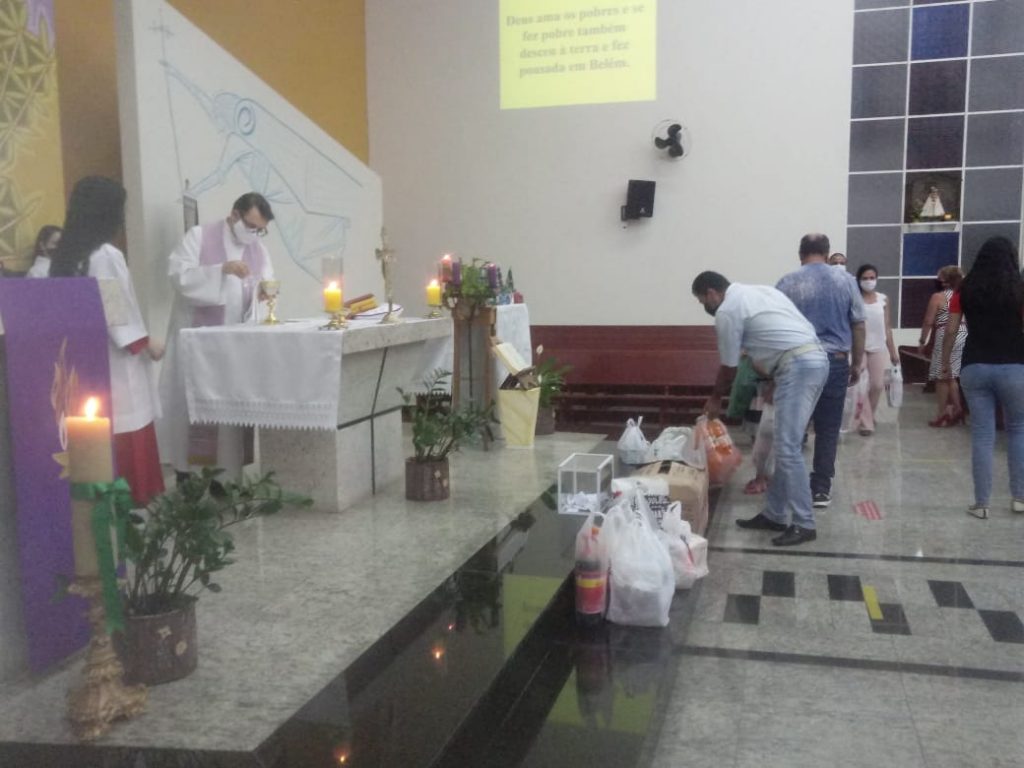 Na Paróquia Jesus de Nazaré, a pedido do Pároco, Padre Joaquim de Souza Filho, os fiéis praticaram solidariedade doando alimentos para a Campanha do Natal Solidário, que vai atender cerca de 100 famílias. O gesto concreto aconteceu na noite desta quarta-feira, 16 de dezembro, durante a Missa de Encerramento da Noventa de Natal.