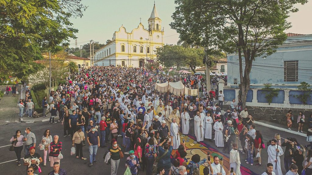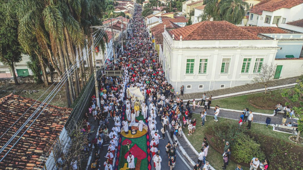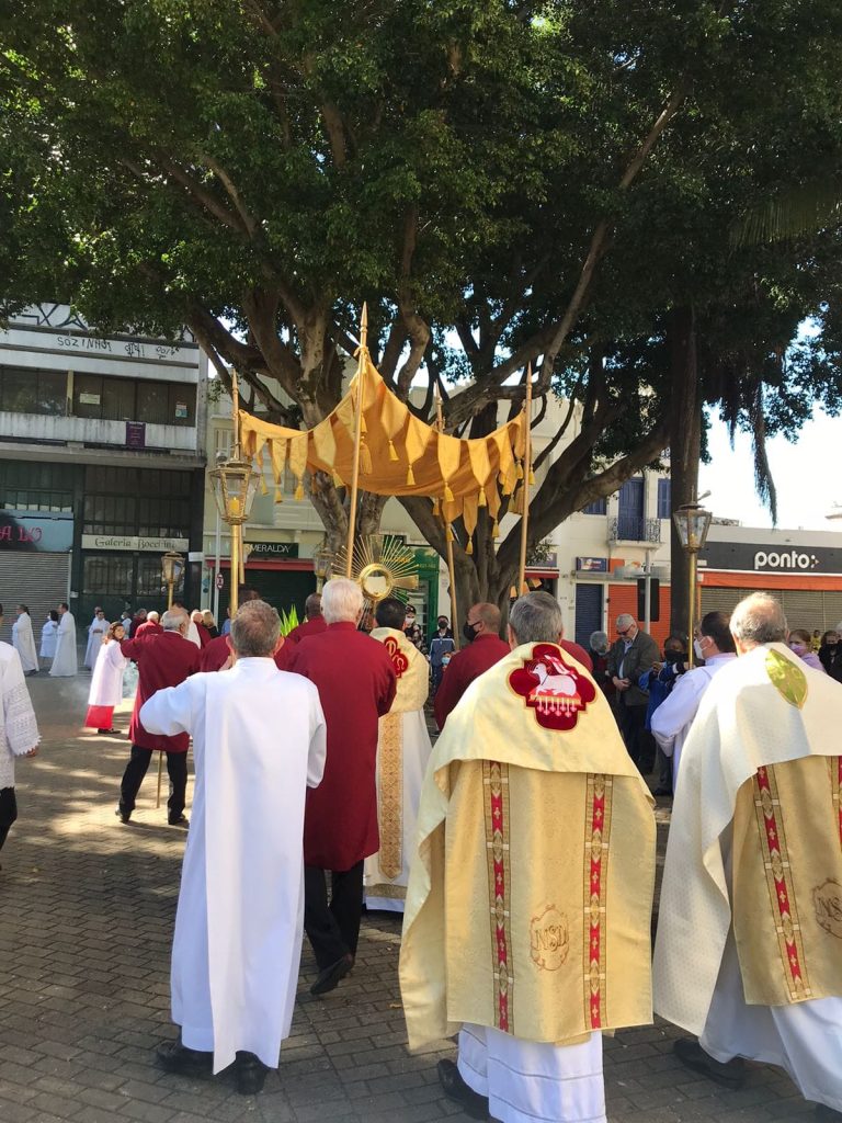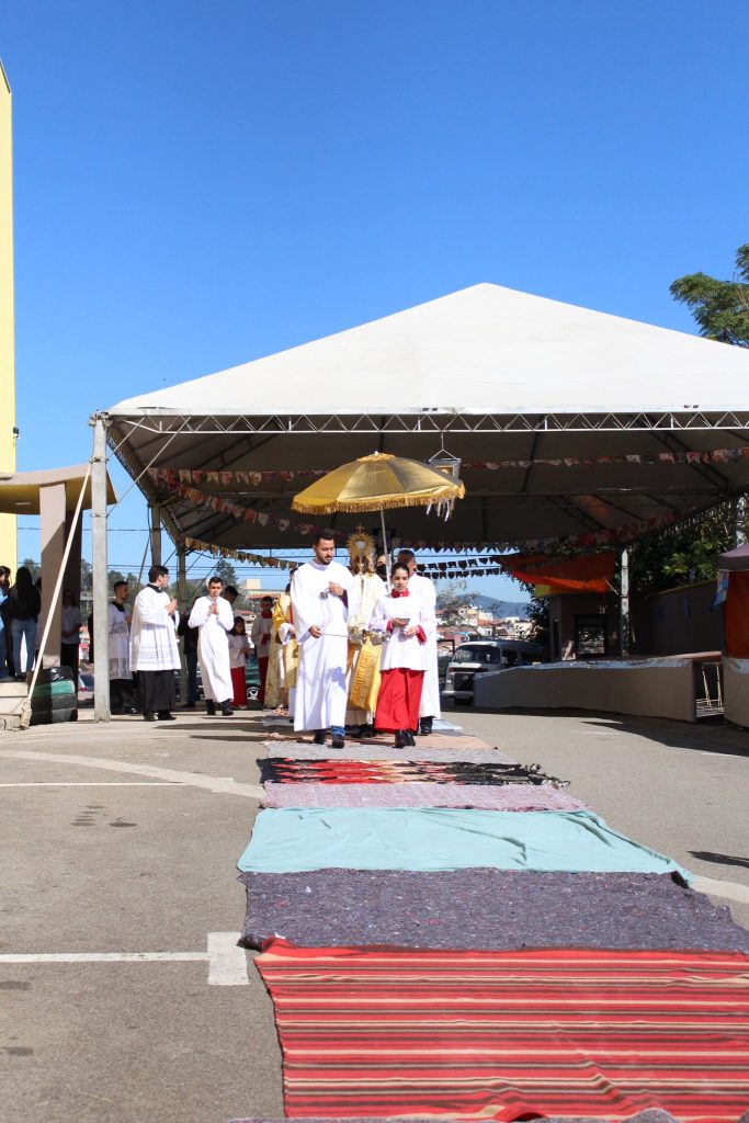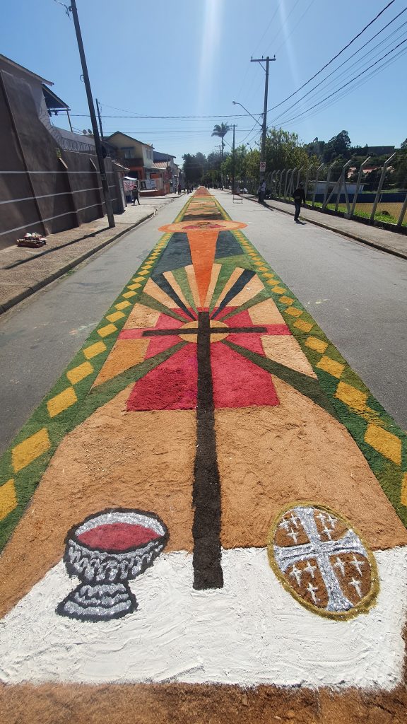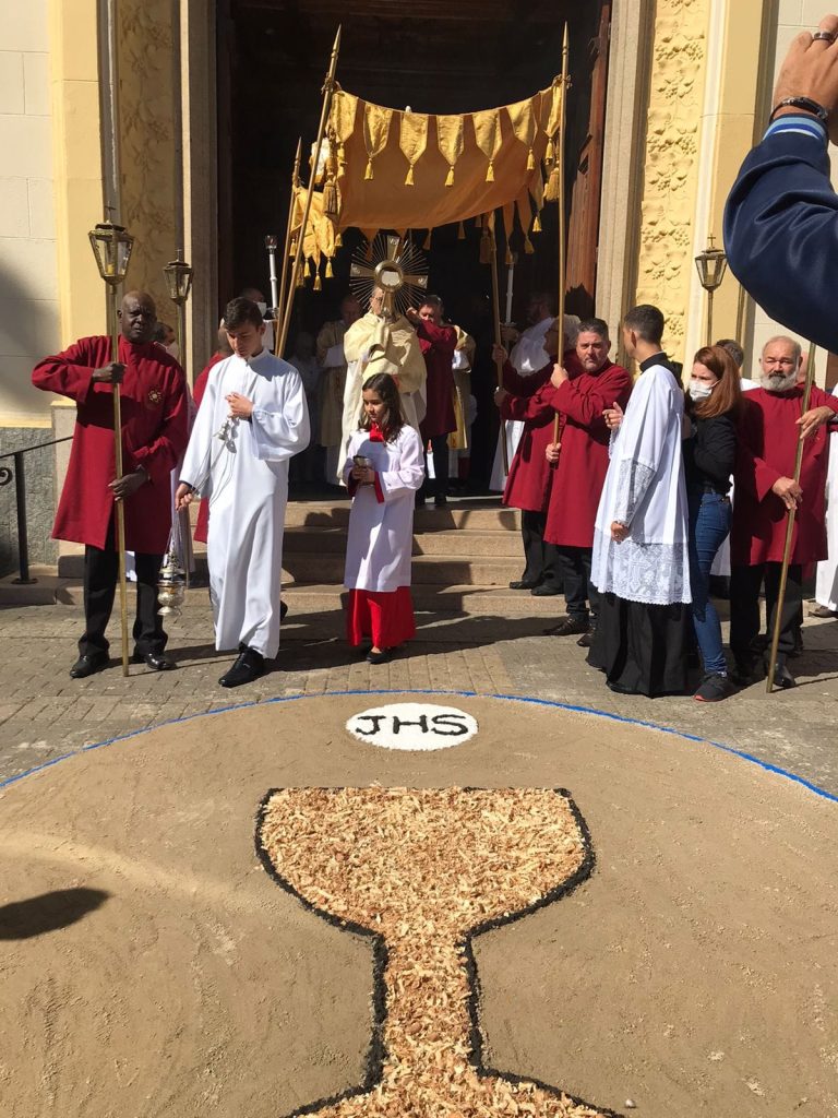 No último dia 16 de junho, a Igreja celebrou a festa de Corpus Christi e foi com muita alegria e emoção que as comunidades paroquiais voltaram a fazer os tradicionais tapetes e a procissão de Corpus Christi, o que não havia sido possível nos últimos dois anos por conta da pandemia de Covid-19.