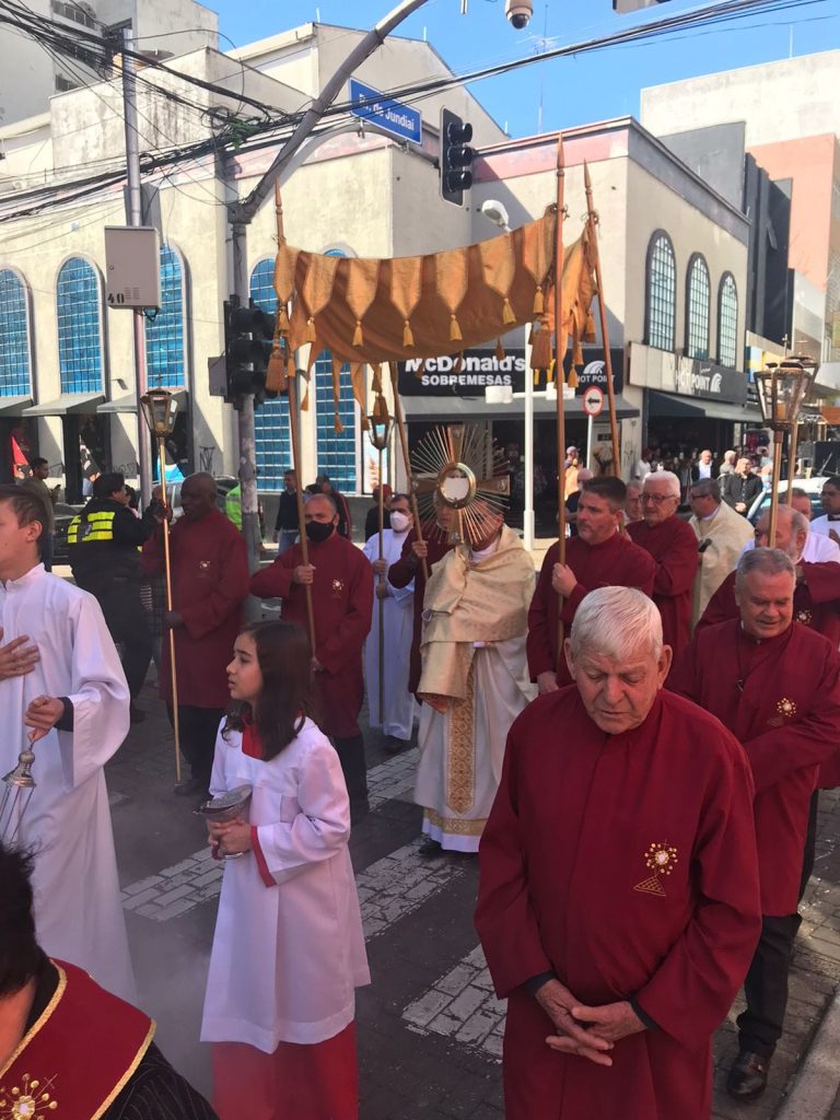 Dom Vicente Costa, Administrador Apostólico, presidiu a missa de Corpus Christi na Catedral Nossa Senhora do Desterro, em Jundiaí, às 9h30.
