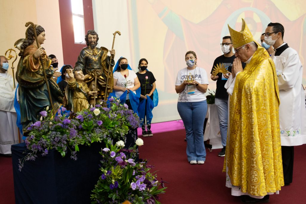 As atividades do segundo dia da 8ª Assembleia Diocesana de Pastoral terminaram com celebração da Palavra e coroação de Nossa Senhora, momento em que o Povo de Deus pediu a intercessão, proteção e auxílio da Virgem Maria.  Dom Vicente encerrou  “para sermos missionários temos que seguir o sim e o exemplo de Maria. Que Maria seja rainha da nossa vida, do nosso ministério, do serviço que temos na Igreja. Que sejamos discípulos apaixonados do seu filho Jesus. Assim seja”.