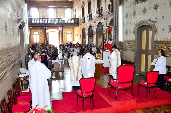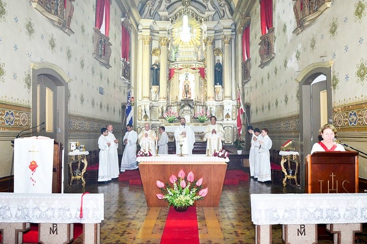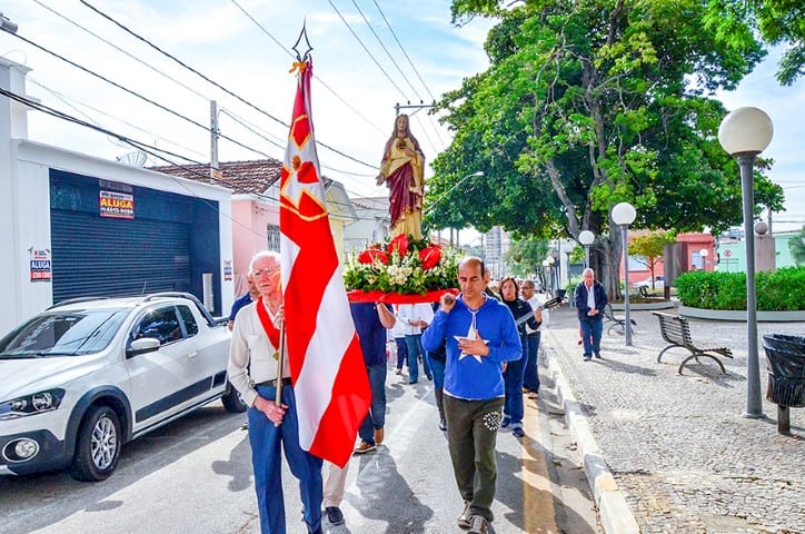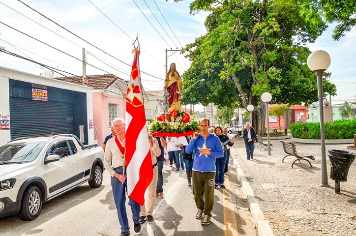Durante a celebração, acontece a admissão de novos zeladores do Sagrado Coração, com a entrega das fitas do Apostolado da Oração.