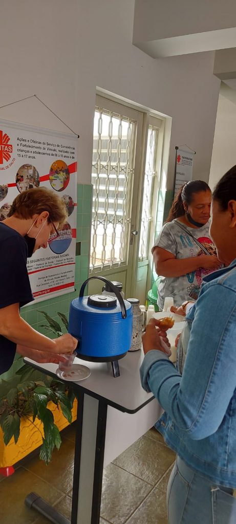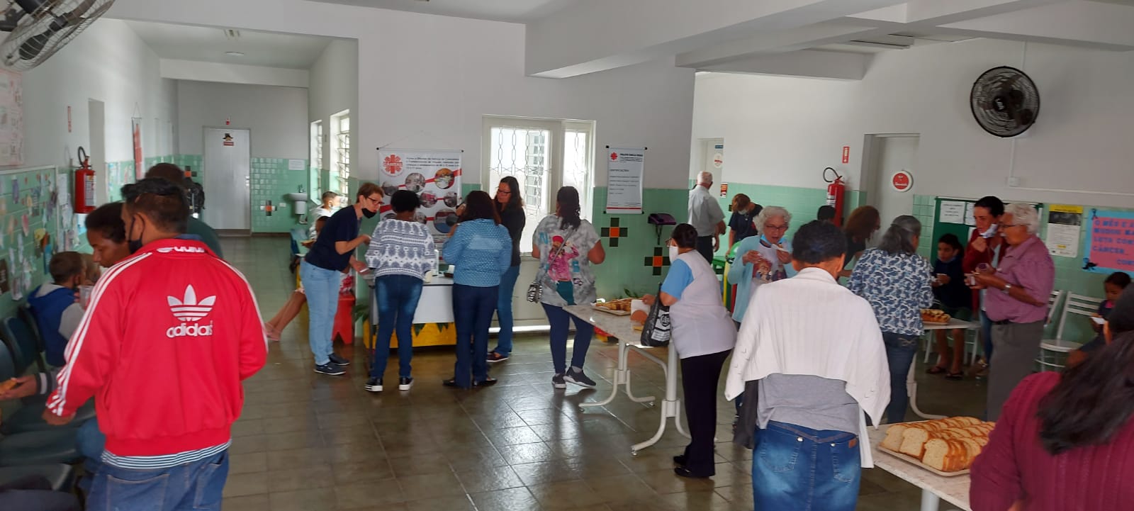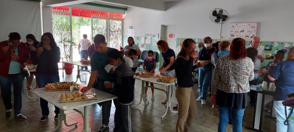Ao final da missa, todos se confraternizaram foi servido um café, no salão da Cáritas, no Jardim Marília.