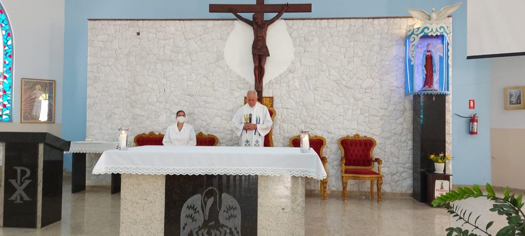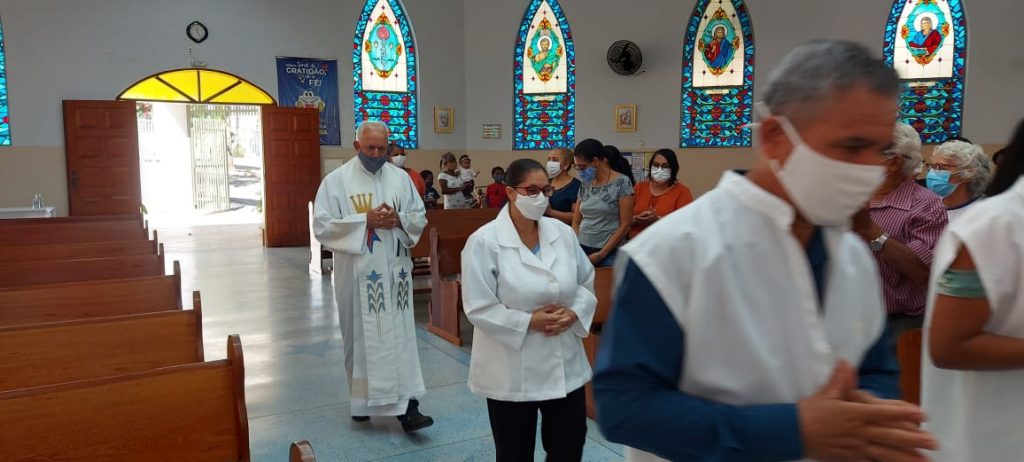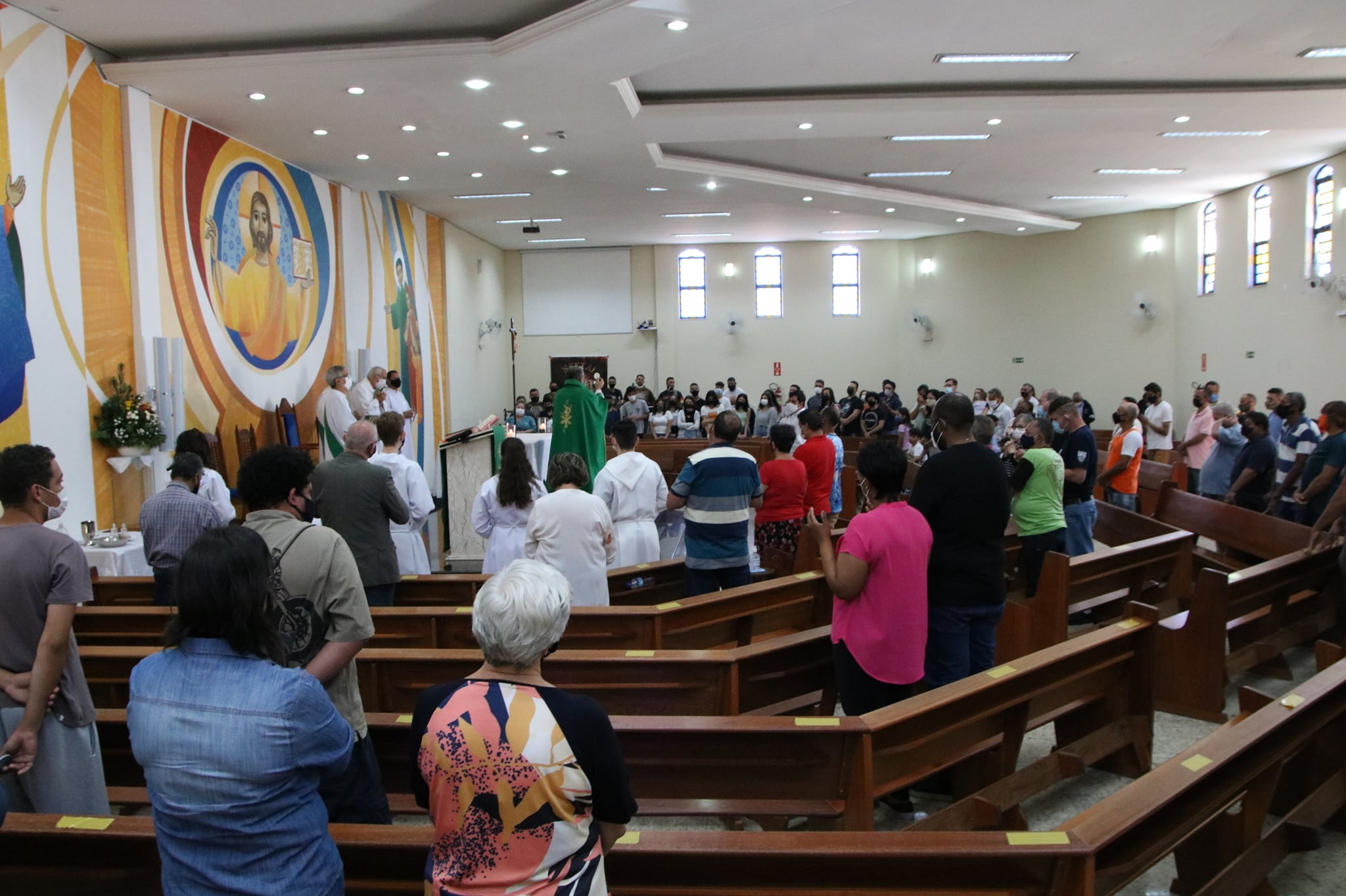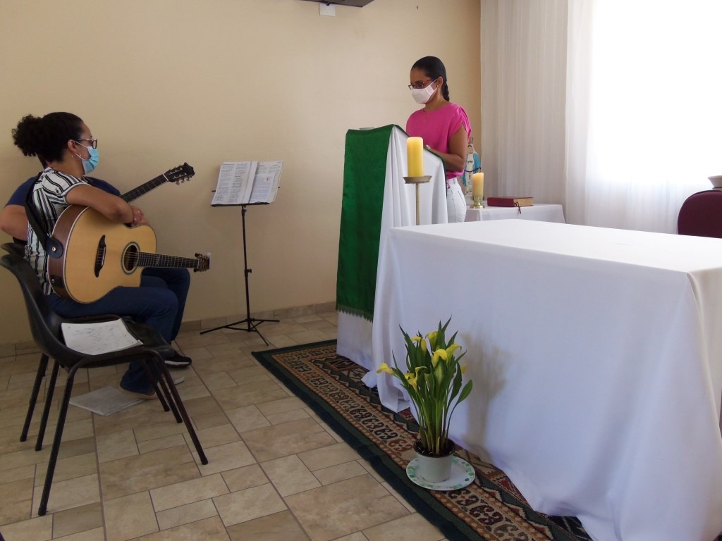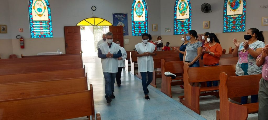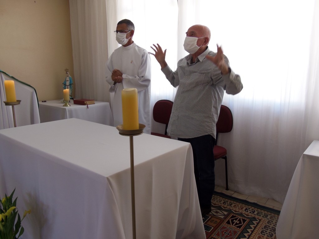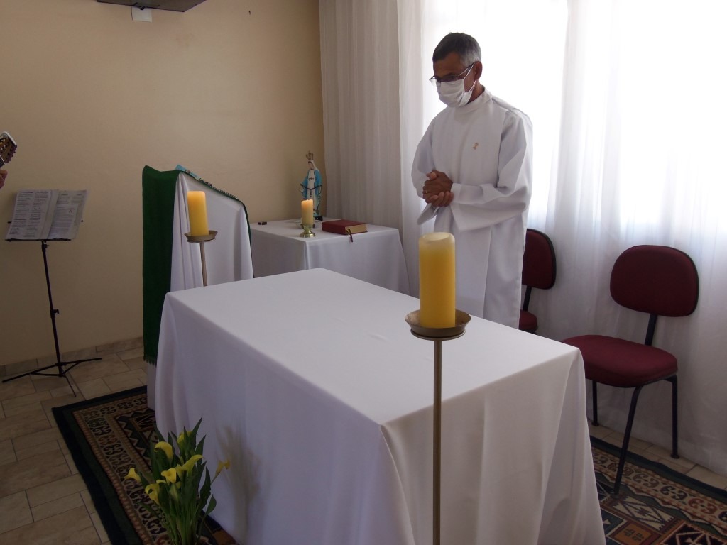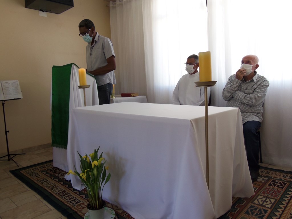 Por conta das restrições da casa com relação à fotos dos acolhidos, apenas registramos alguns momentos da celebração da Palavra, sob a presidência do Ministro Extraordinário da Palavra Marcelino Alves Nicolau, com ajuda dos salmistas Fernando e Elisângela Limas Gomes, todos da Paróquia São Benedito; a acolhida e a bênção final foram feitas pelo Diácono Permanente Emérito, Eldis Lúcio Beltrão, da Paróquia Nossa Senhora Aparecida.