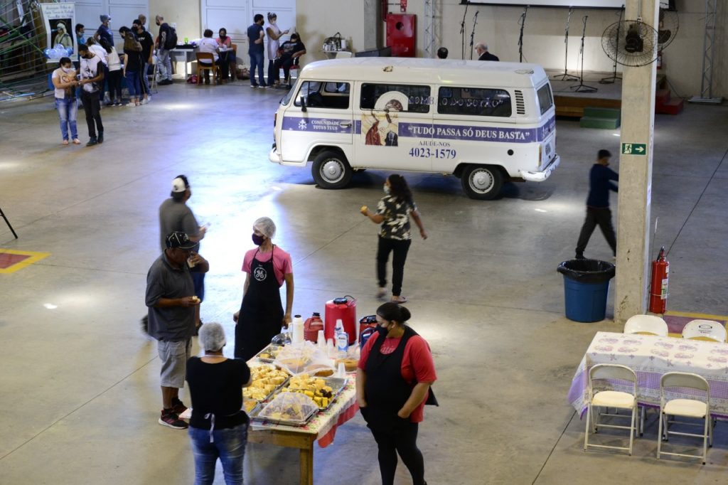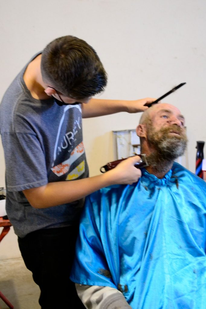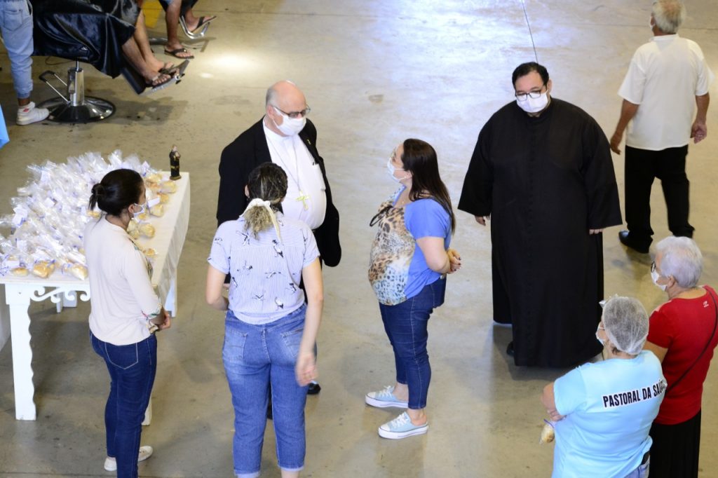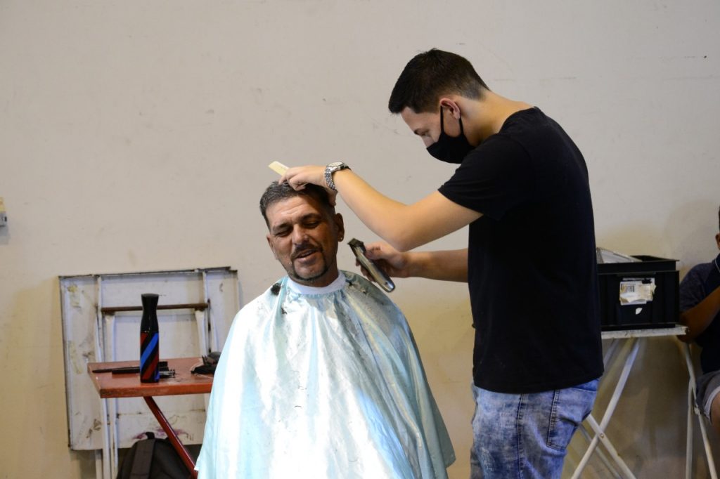 Em seguida, no salão paroquial, realizou-se uma ação com os pobres e moradores de rua, da cidade e da Associação Comunidade Totus Tuus, com banho, corte de cabelo, barba, cuidados com a higiene pessoal, doação de roupas e calçados aos mais necessitados.