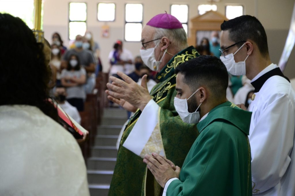 Ao final da missa, nosso bispo diocesano parabenizou o Vigário Paroquial, Padre Luís Ricardo Gracio, que hoje completa mais um ano de vida.