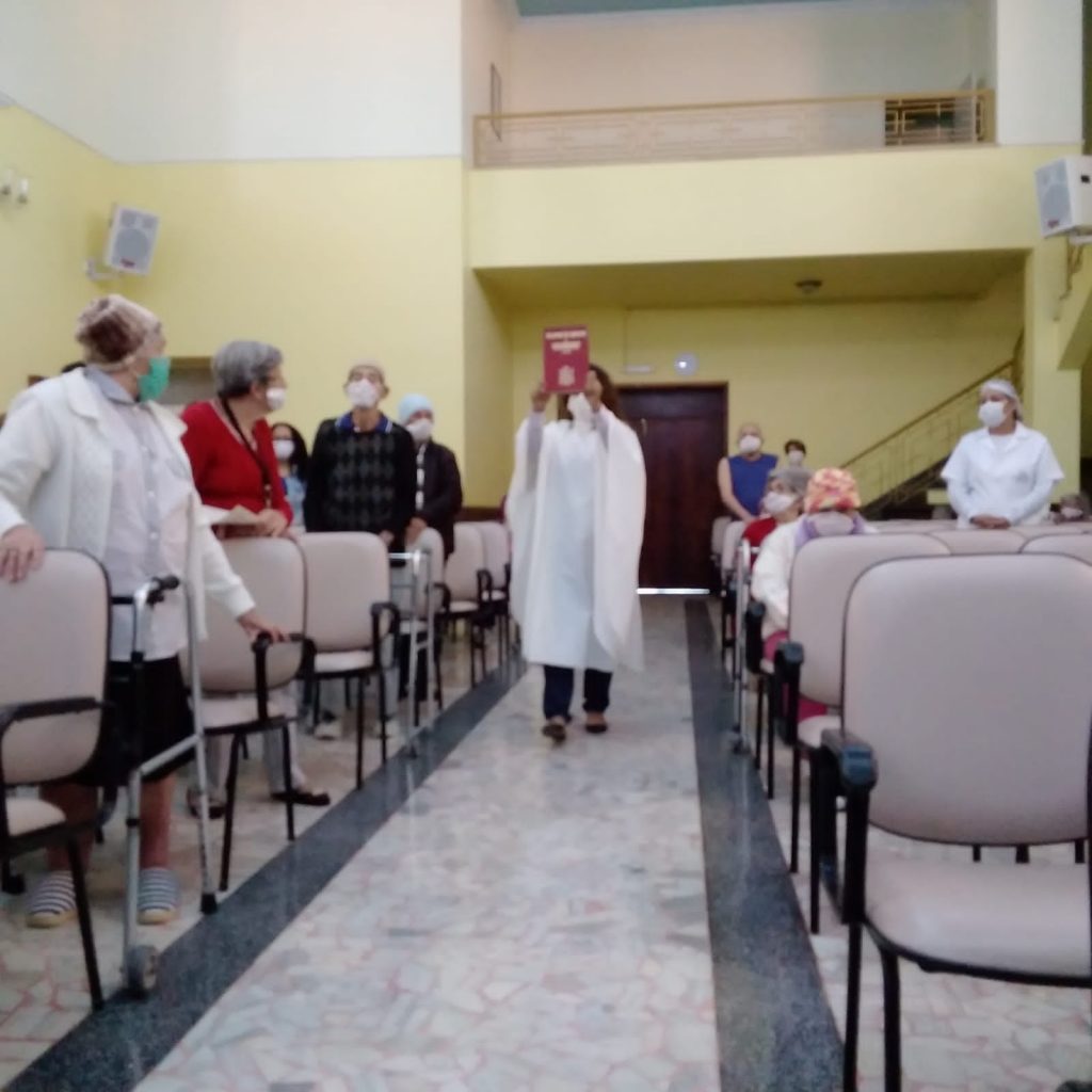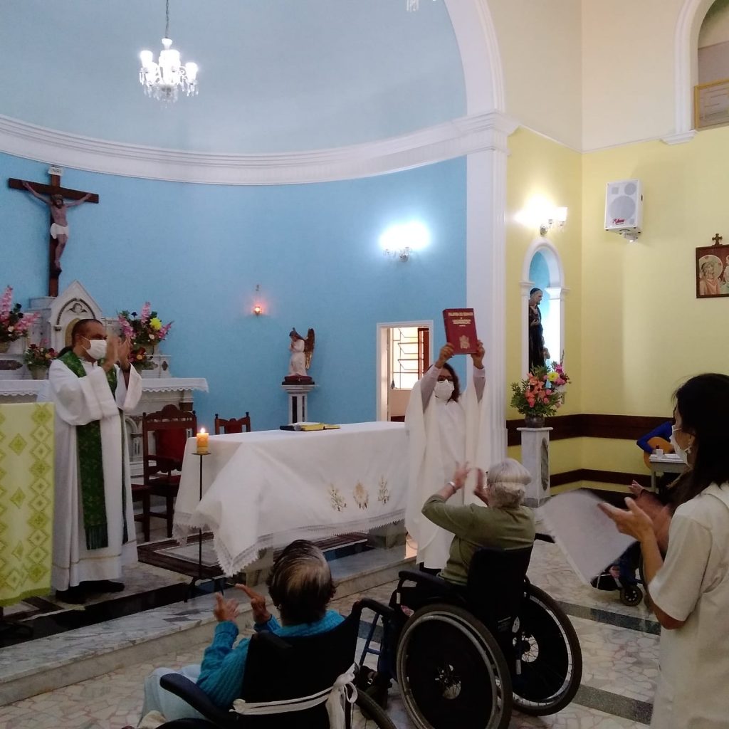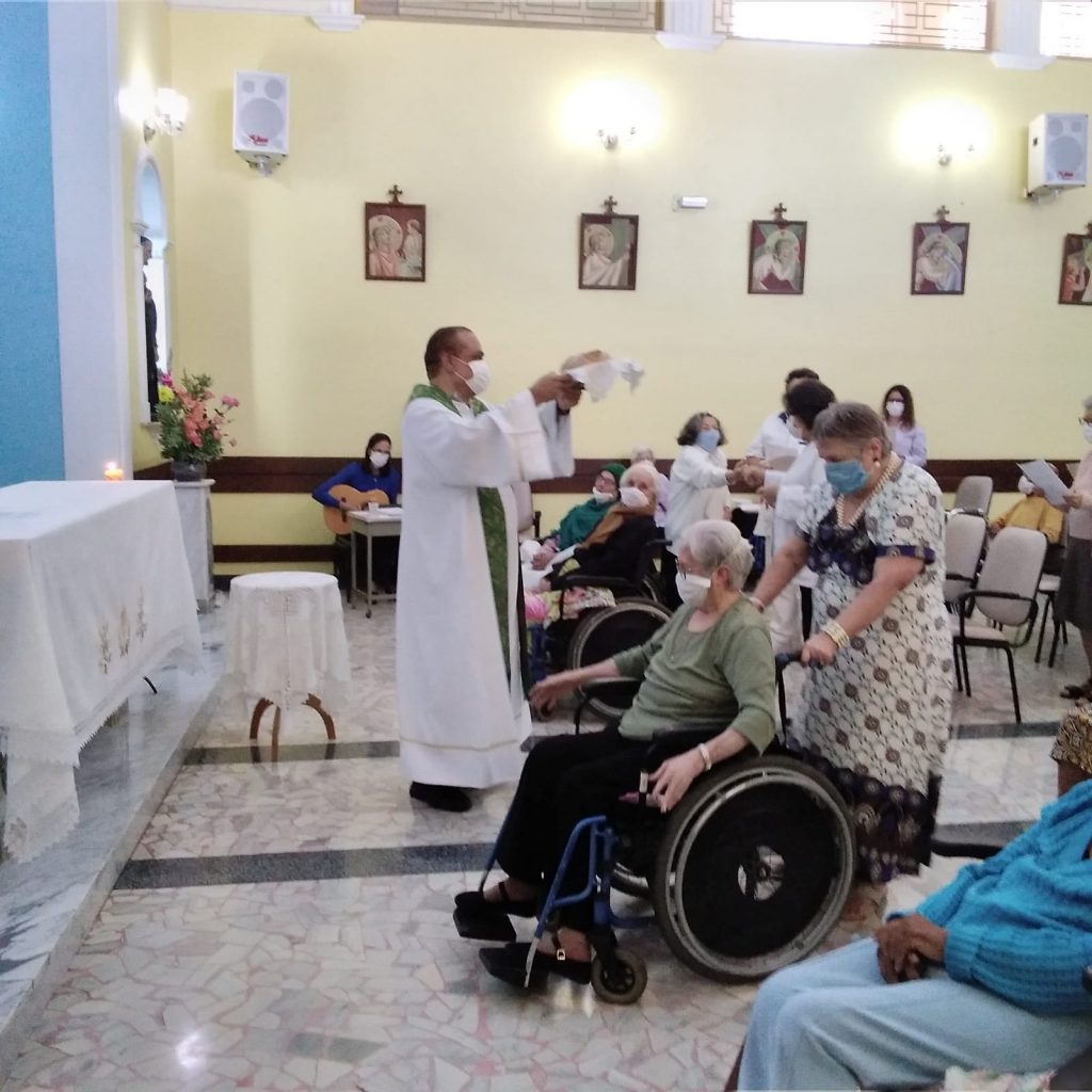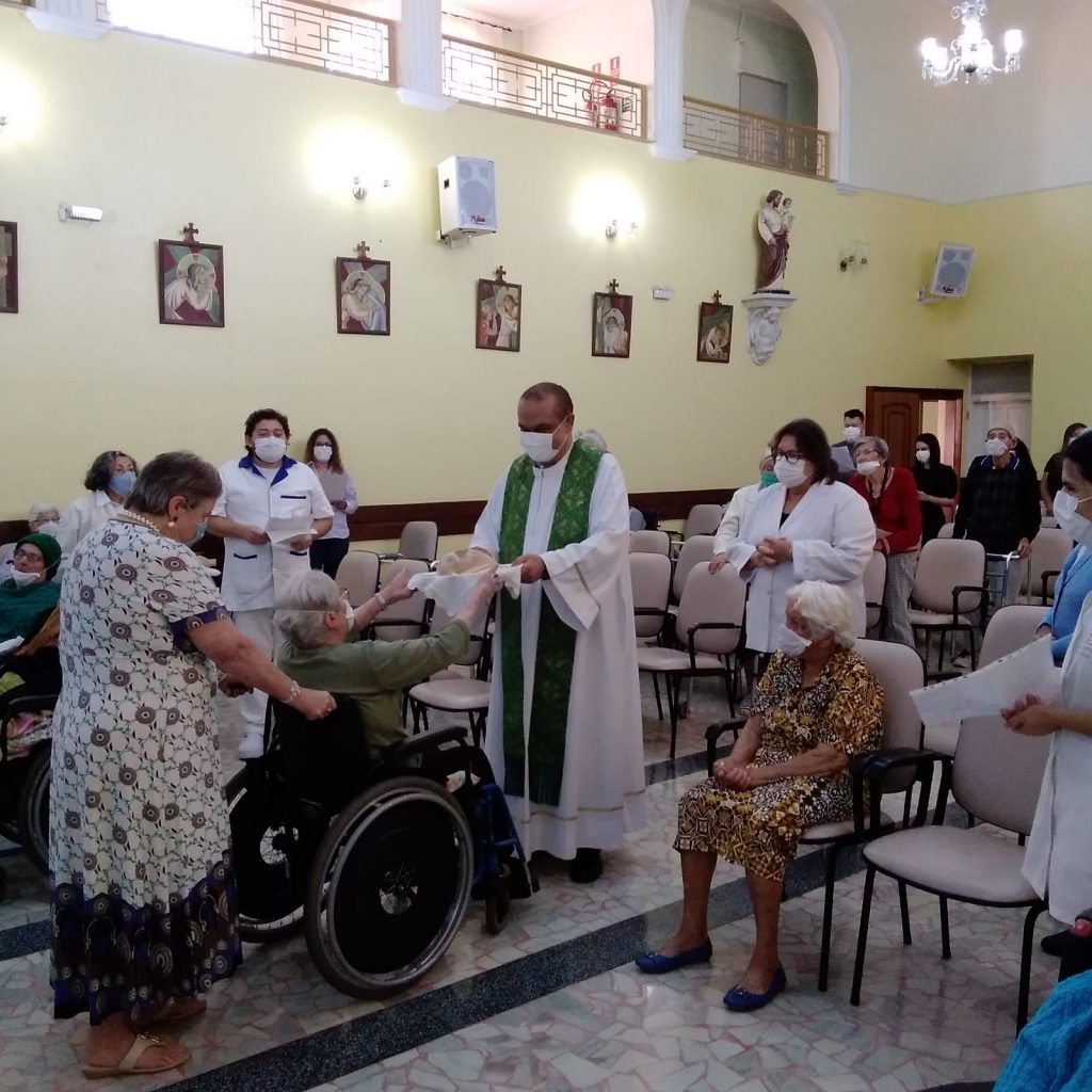 No Lar Nossa Senhora das Graças, o Padre José Roberto Araújo presidiu a Santa Missa para os residentes e colaboradores da casa. Ao final, houve um momento de confraternização.