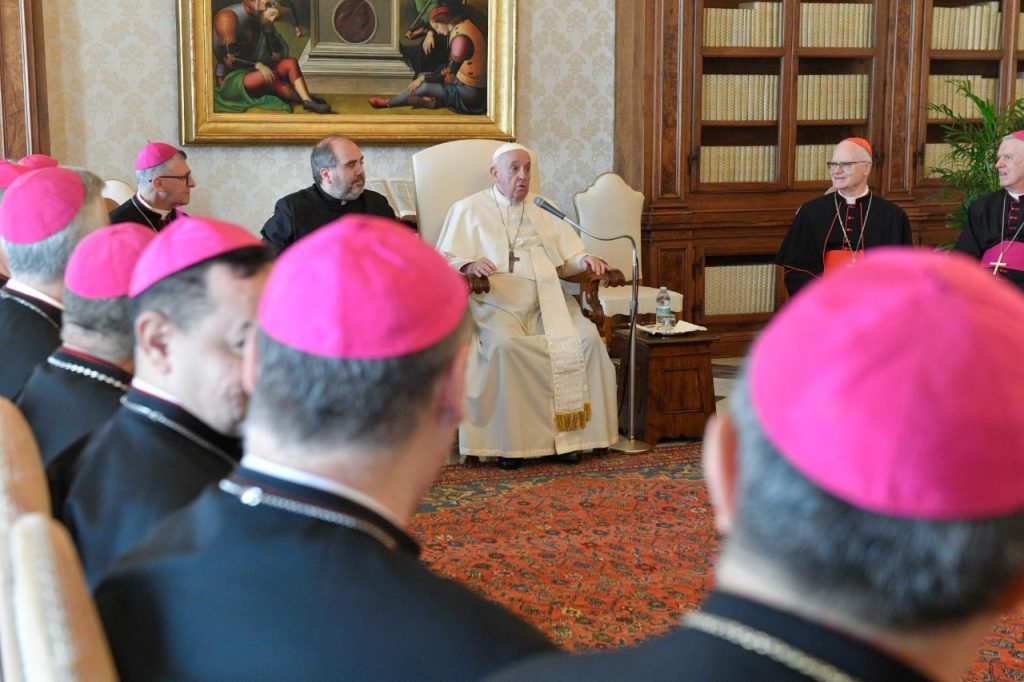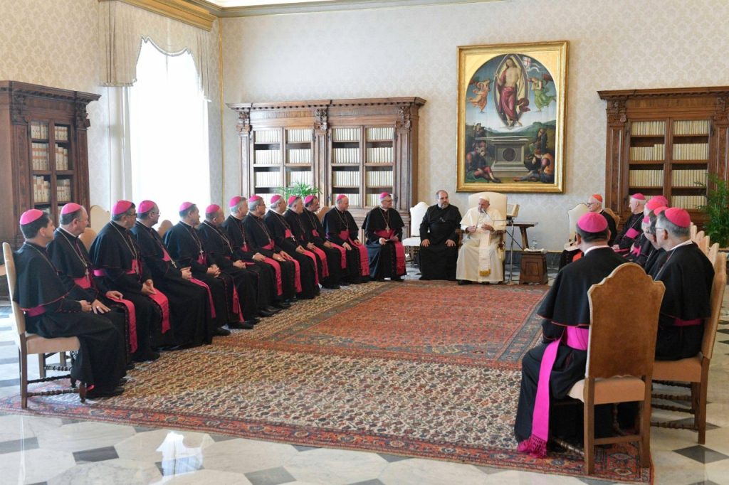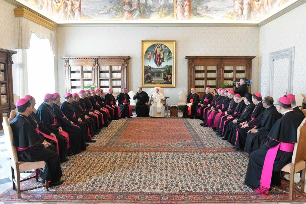 Após o momento de oração comum desta sexta-feira, dia 23, os 25 bispos e um padre administrador diocesano participaram do ponto alto da Visita Ad Limina Apostolorum das províncias eclesiásticas de Aparecida, São Paulo e Sorocaba: a audiência com o Papa Francisco, sucessor de São Pedro Apóstolo.